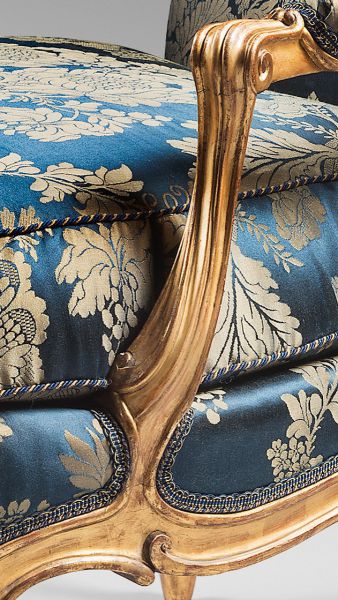 MATERIAUX : Carved and gilded wood, damask "La coquille Marine